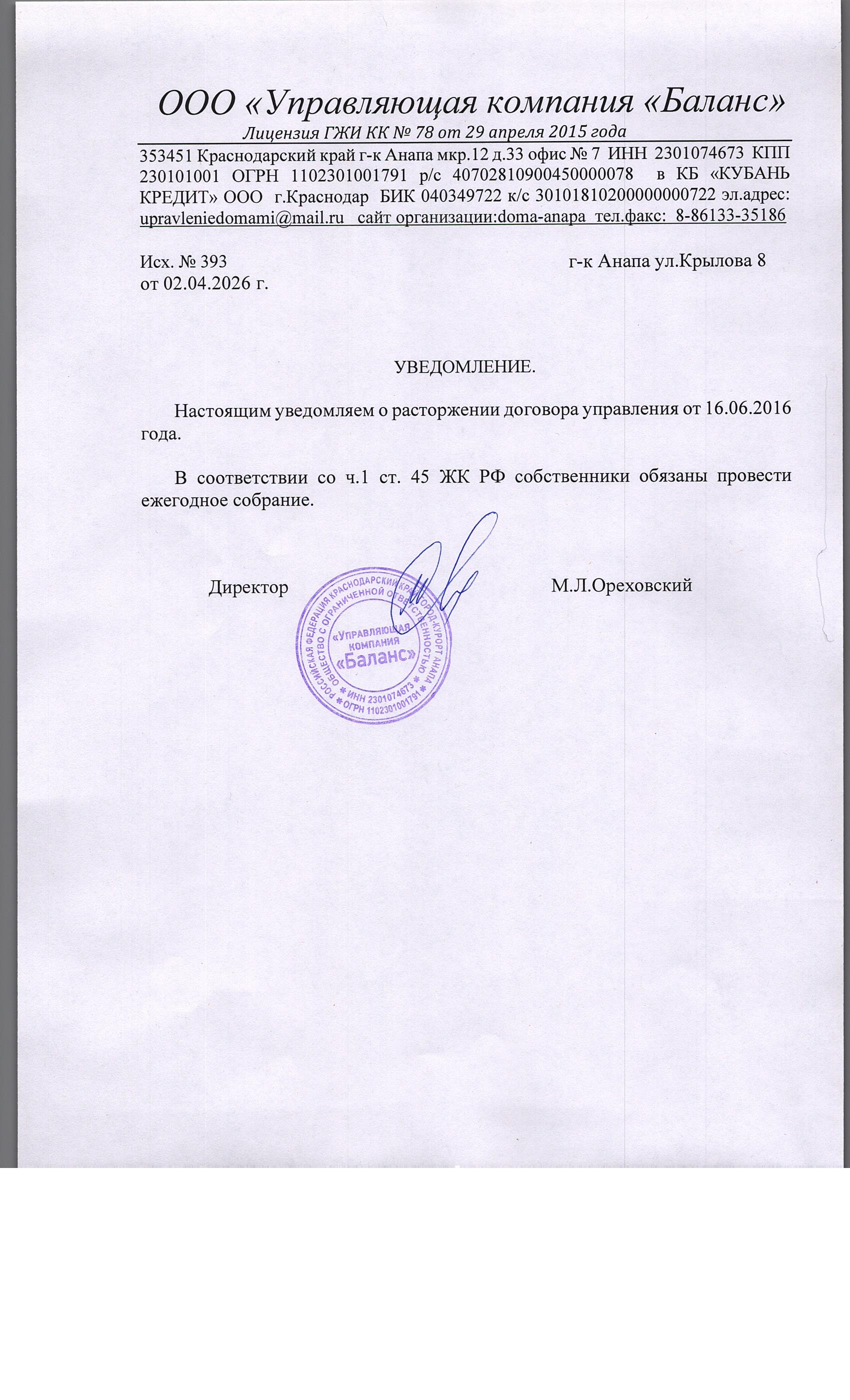 Уведомление о проведении общего собрания >>>>