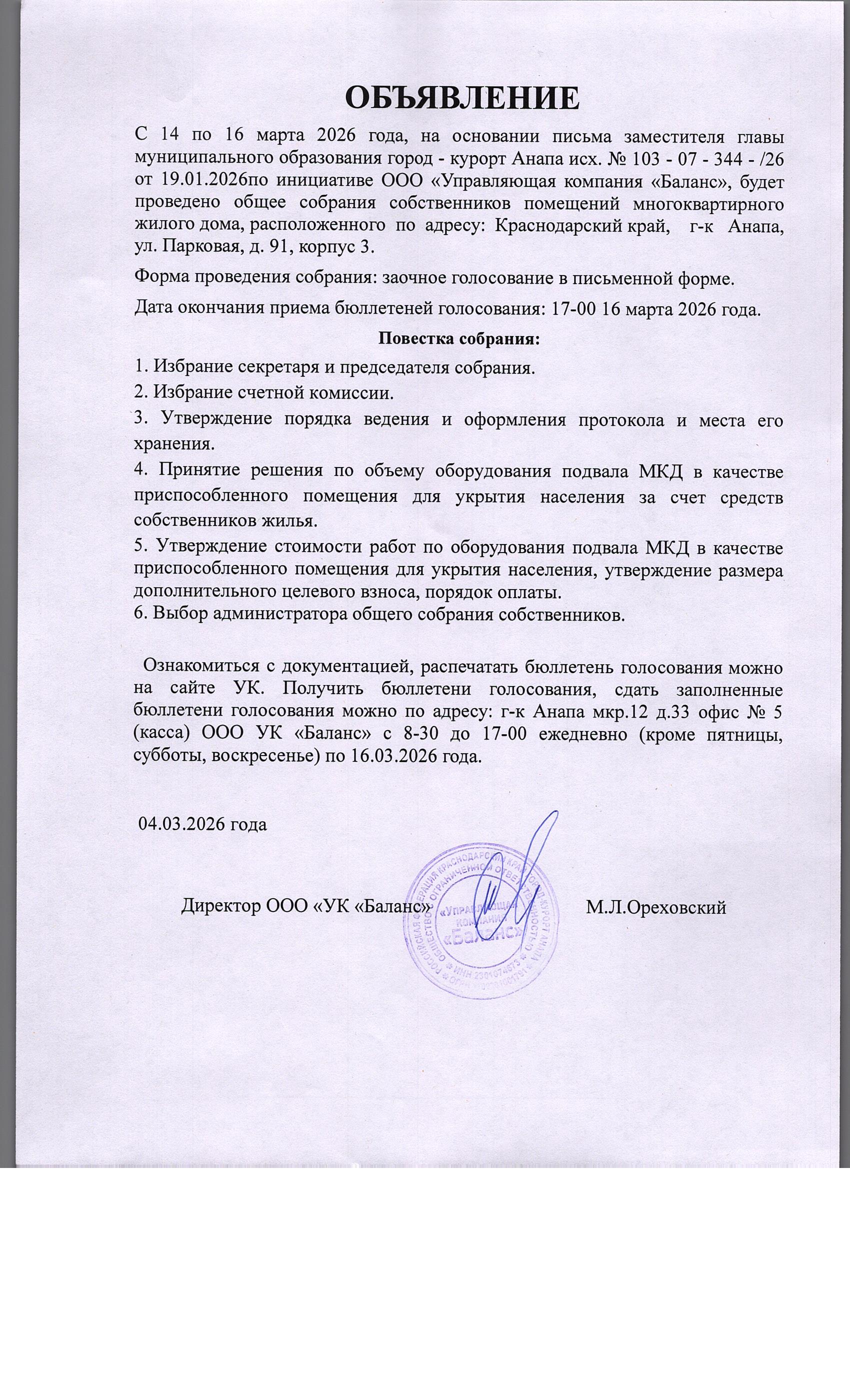 Бюллетень голосования от 16.03.2026 >>>>